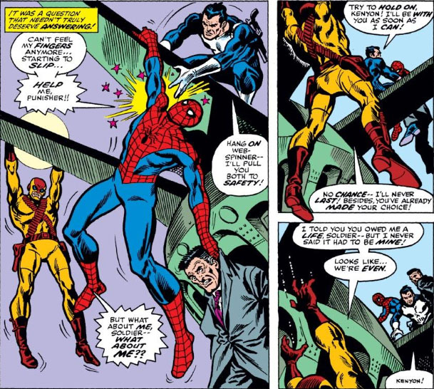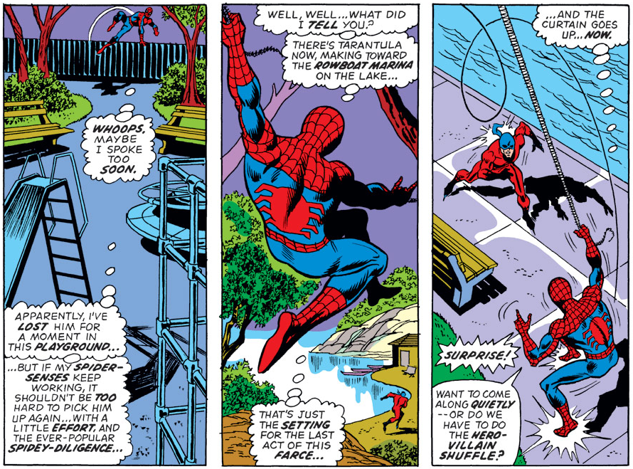 It’s fitting that Ross Andru, who drew the first story we looked at today, brings it home with the last entry on this list (written by Gerry Conway): Central Park. Spidey and the Punisher bust up Tarantula’s gang, while the South American villain tries to make good his escape through Central Park. With help from his Spider-Sense and a sound dunking in the lake, the battle is over in no time.