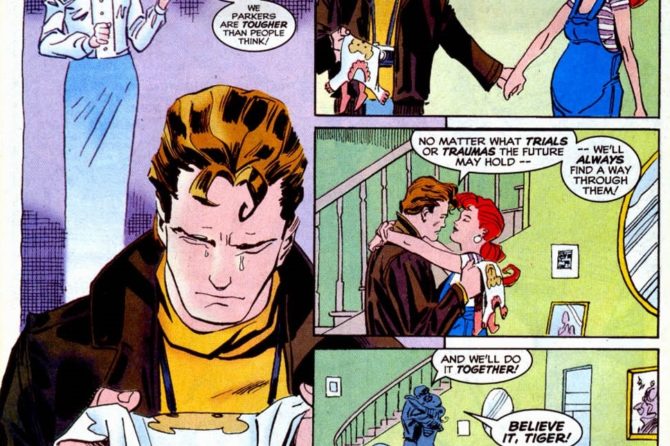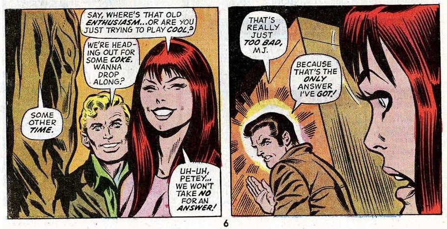 Gwen just died 4 issues ago, but good on Flash and MJ trying to get Peter to socialize to take his mind off of it.