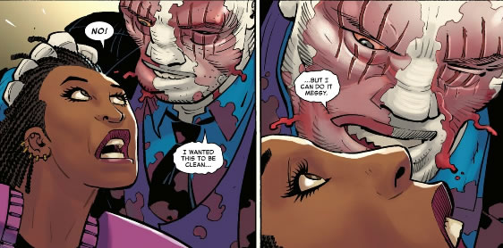 Tombstone has never been a draw for me, but this is a brutal monster! This bumps him up on the ranks of villainy in my book and I am here for it all day long. Wells has his faults, but he has elevated this loser character.