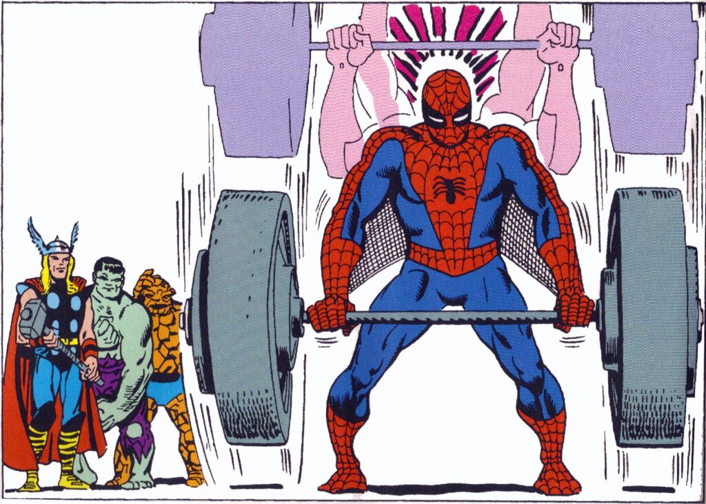 We know that Tombstone has tough skin (as hard as diamonds is what he says at one point) and he is able to withstand quite a bit of punishment. It takes Spider-Man wailing on him to put him down – which is does right in front of the subway train. Tombstone lost right there. If the train doesn’t come, Spider-Man webs the dude up and the comic is over before the crucial moment comes for Tombstone to step away from the abyss. We also know that Tombstone can lift 6 tons. To put it in perspective, these are the characters that he is stronger than: