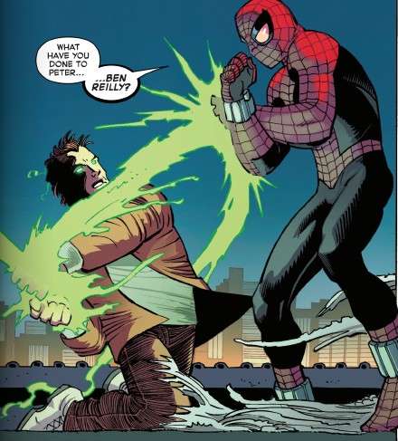“Peter” points out that this “Spider-Man” doesn’t have a spider-sense, but when “Spider-Man” has him on the ropes, “Peter” whips out some psycho-reactive energy, revealing himself to be Ben Reilly, aka Chasm!