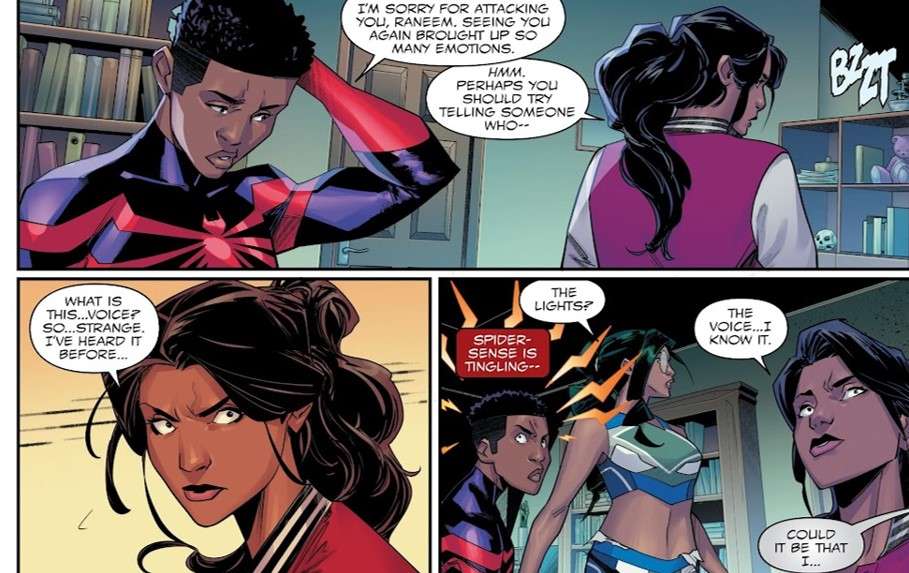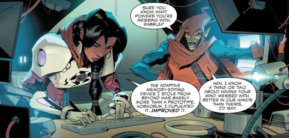 - Let’s start with the big hook of this issue: Miles and Raneem Rashad — aka The Rabble — seeing each other again… in therapy. Yes, you read that right. Turns out both hero and villain are seeing the same therapist, Dr. Kwan. What starts as an awkward encounter quickly explodes into something intense and personal. These two share serious history, and seeing them face each other in such a vulnerable setting? Genius storytelling. The tension is so thick you could cut it with a Goblin Glider.