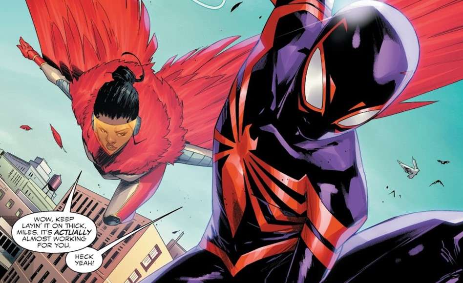 - But let’s talk about character. This issue is packed with meaningful moments, especially between Miles and Starling (Tiana Toomes). These two continue to prove they’re the most wholesome, emotionally grounded couple in comics right now. Their chemistry is real, funny, warm — and deeply vulnerable. Miles opens up about his guilt over people he couldn’t save, including Raneem. And Starling listens. Supports. Pushes him just enough. She balances out his Spidey-humor with grounded reactions, and the trust between them is honestly beautiful to witness.