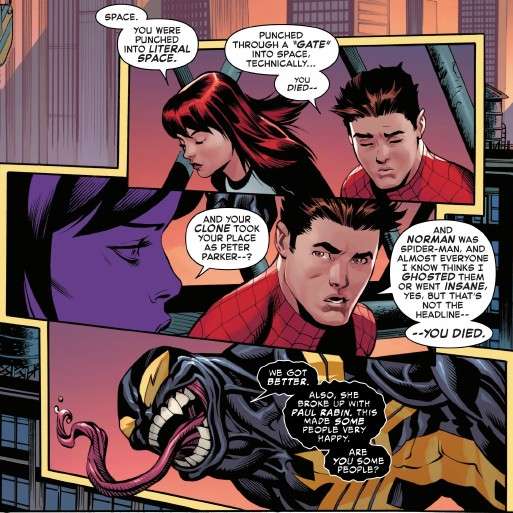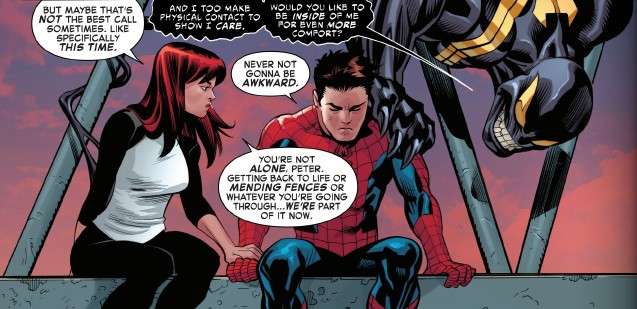 (The face that we have Peter, MJ and the Venom symbiote having a casual conversation like this is just wild.)