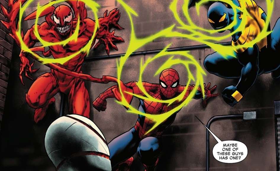 That’s really the strength of this issue: Eddie doesn’t feel stable at all, and the book knows it. Even when Spider-Man and MJ Venom are trying to help, there’s this constant tension hanging over every scene because nobody — reader included — can fully trust where Eddie ends and Carnage begins. By the end of the issue, that question becomes the whole point.
