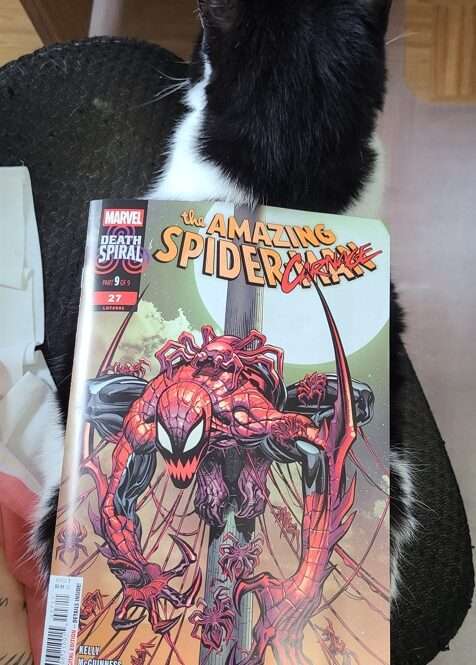 Well, Death Spiral is over. What happened? Paul is dead, MJ killed someone, Eddie is in prison, and the Carnage symbiote is on a cockroach (and heading for Spider-Versity, I guess). And I feel like most of these things are going to be followed up on in other book and not in ASM.