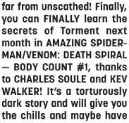While I don’t like the idea of having MJ murder Torment, I do commend the issue for having the guts to do it. I fully expected to turn the page and see that Spidey/Anti-Venom/Eddie/someone had saved Torment after Venom dropped him.
